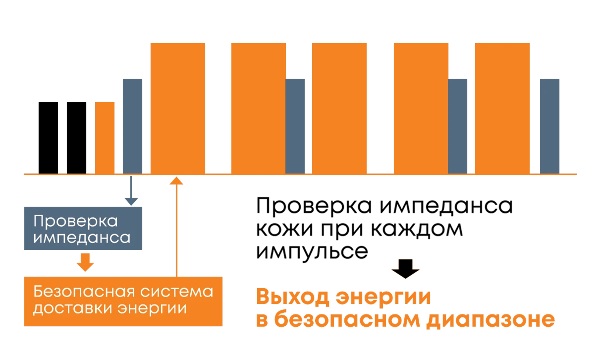 При помощи передачи высокочастотного тока (6.78МГц), происходит нагрев (40−60°C) в глубоких тканях кожи, стимулируя лифтинг и уплотнение кожи.