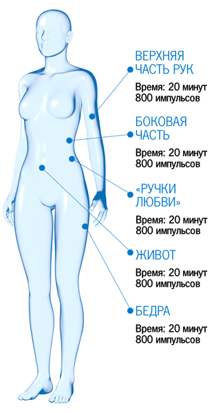 Ультразвук действует точечно на жировые клетки, нагревая их до 55° и разрушая, вследствие этого разрушения и происходит уменьшение объёмов.